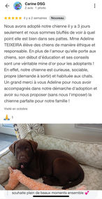 🐾 Je suis Adeline, formée en éducation canine et comme auxiliaire vétérinaire, puis travaillé dans le milieu associatif, j’accompagne aujourd’hui chaque chiot et chaque famille avec patience, respect et expertise, pour bâtir des liens solides dès les premiers pas.